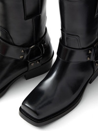 40mm Rockstud biker boots Highlights - Black - Calf leather - Ankle strap - Signature rockstud detailing - Square toe - Block heel - Slip-on style Made in Italy Composition Outer: Calf Leather 100%, Metal 100%, Plastic 100% Sole: Calf Leather 100% Lining: Calf Leather 100%
