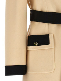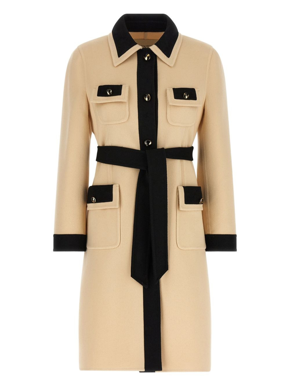 belted contrast-trim coat Highlights - Valentino ready to wear - Beige - Contrast black trim - Front button closure - Long sleeves Made in Italy Composition Virgin Wool 90%, Cashmere 10% Washing instructions Read Manufacturer Guidelines