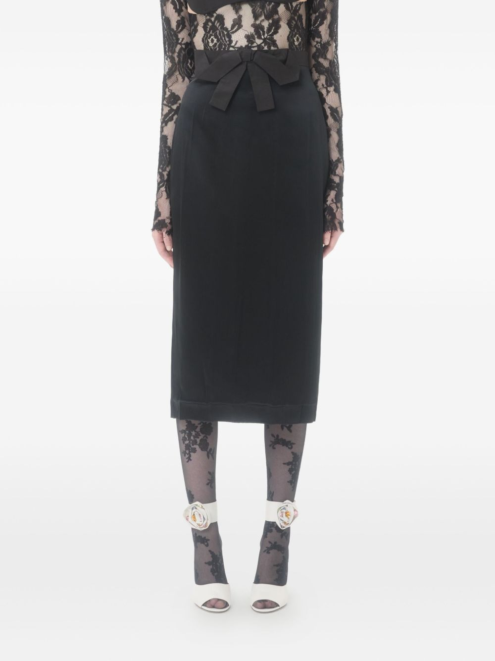 bow-detail satin midi skirt Highlights - Valentino ready to wear - Black - Satin fabric - Taffeta bow - Rear zip fastening - Hook-and-eye closure Made in Italy Composition Outer: Acetate 100% Lining: Silk 100% Washing instructions Read Manufacturer Guidelines