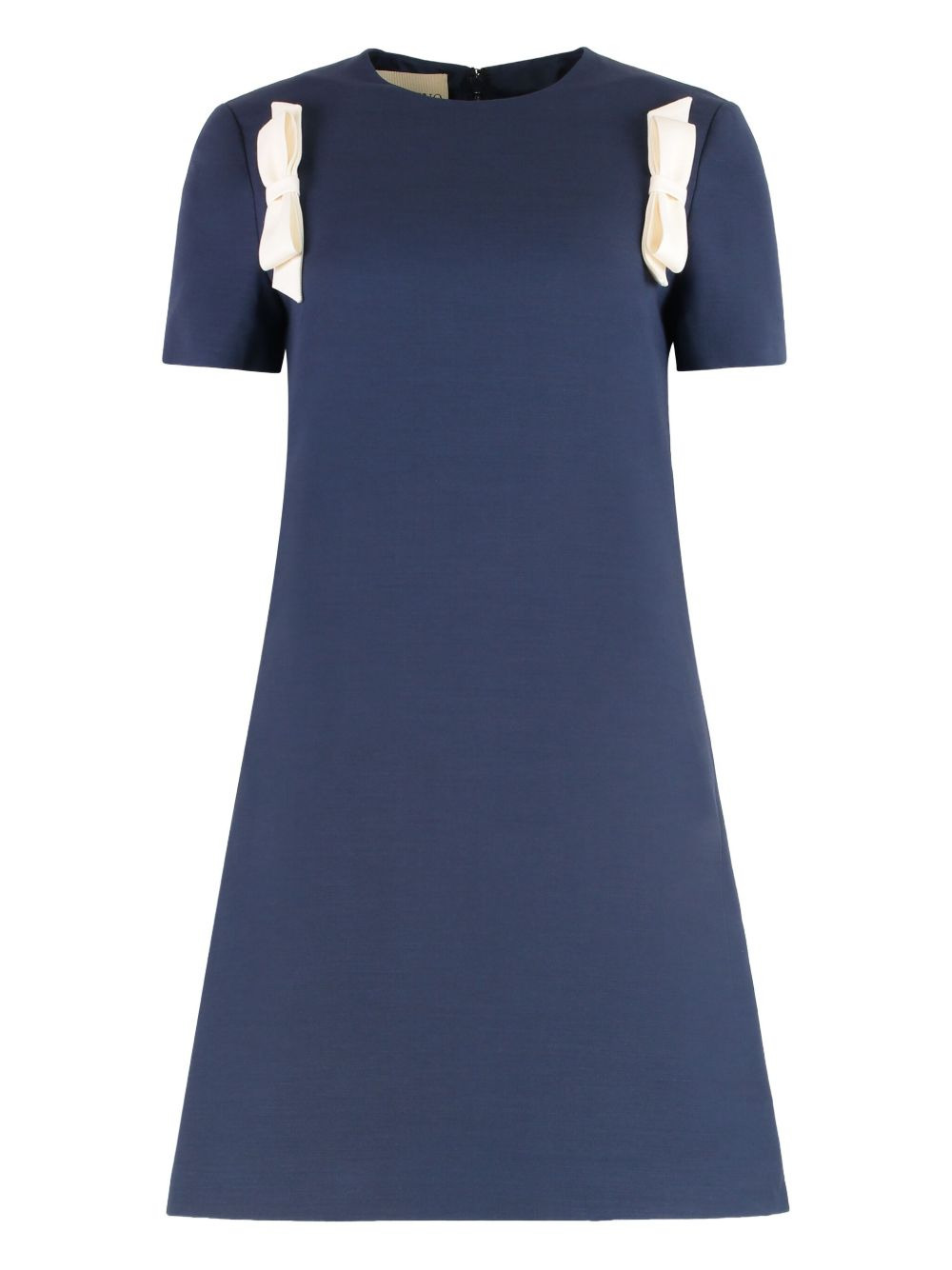 bow-embellished shift dress Highlights - Navy - Concealed rear zip fastening - Bow detailing Made in Italy Composition Virgin Wool 65%, Silk 35% Washing instructions Dry Clean Only