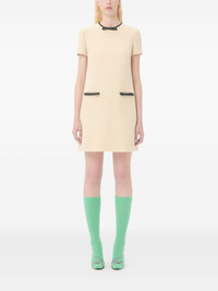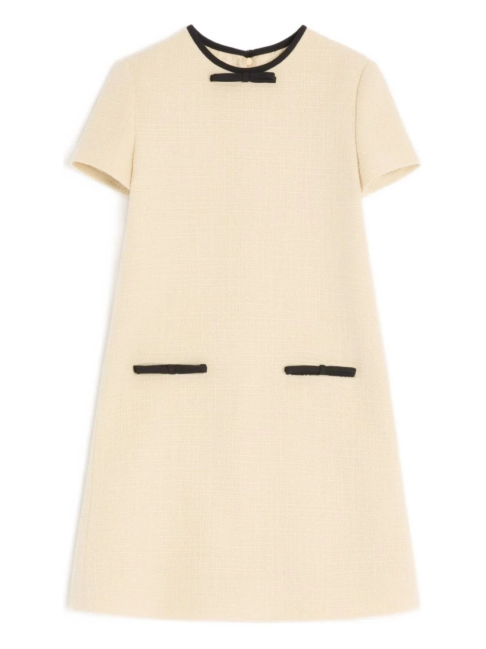 bow-embellished tweed dress Highlights - Ivory - Wool tweed - Short sleeves - Bow neckline - Black contrast trim - Front pockets Made in Italy Composition Outer: Wool 97%, Polyamide 3% Lining: Bio Acetate 74%, Silk 26% Washing instructions Read Manufacturer Guidelines