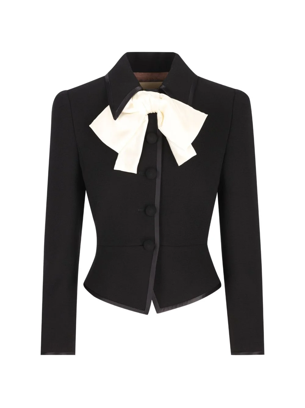 bow-embellishment button-fastening wool jacket Highlights - Black - Bow detail - Button fastening - Peak lapels - Long sleeves - Tonal trim Made in Italy Composition Virgin Wool 100% Washing instructions Read Manufacturer Guidelines