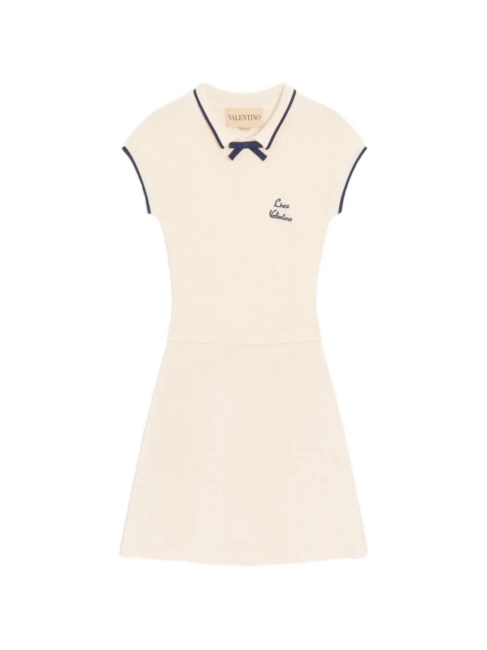 bow knitted mini dress Highlights - Valentino dress - Bone white - Bow detail - Short sleeves - Knitted - Text applique - Contrasting trims - The full look includes valentino garavani accessories. Made In Italy Composition Cotton 54%, Viscose 46% Washing instructions Read Manufacturer Guidelines