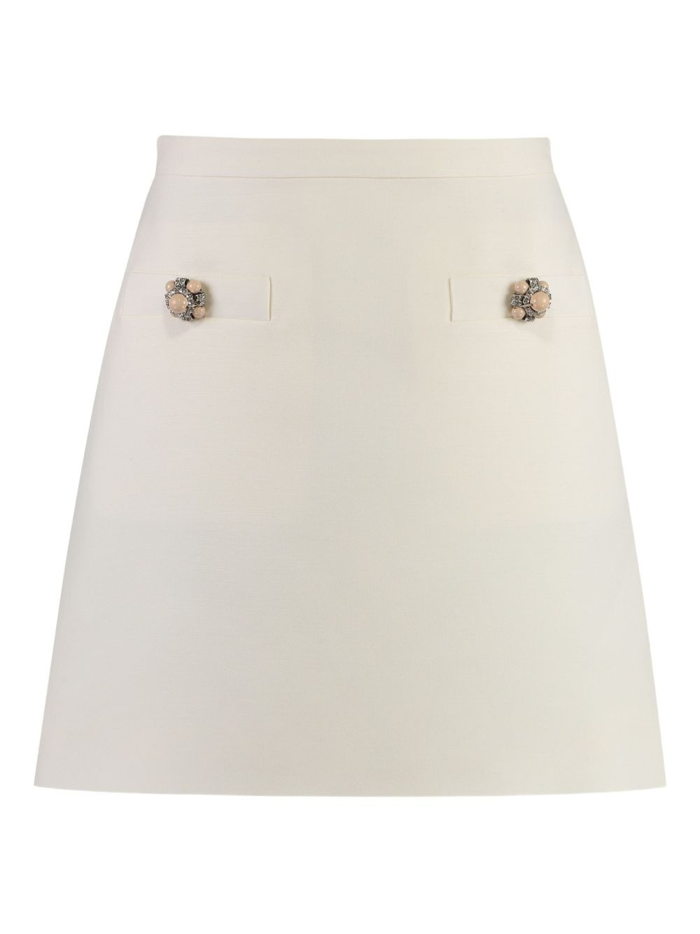 Crepe Couture mini skirt Highlights - White - Decorative button detailing - Concealed side zip fastening - Two front welt pockets - A-line Made in Italy Composition Lining: Acetate 75%, Silk 25% Outer: Virgin Wool 65%, Silk 35%