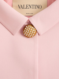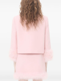 button-embellished feather-trim jacket Highlights - Valentino ready to wear - Light pink - Feather trim - Button embellishment - Bead detailing - Crepe texture - Please note that for pierre hardy shoes, french and italian sizing is equivalent. Made in Italy Composition Wool 65%, Silk 35%