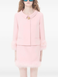 button-embellished feather-trim jacket