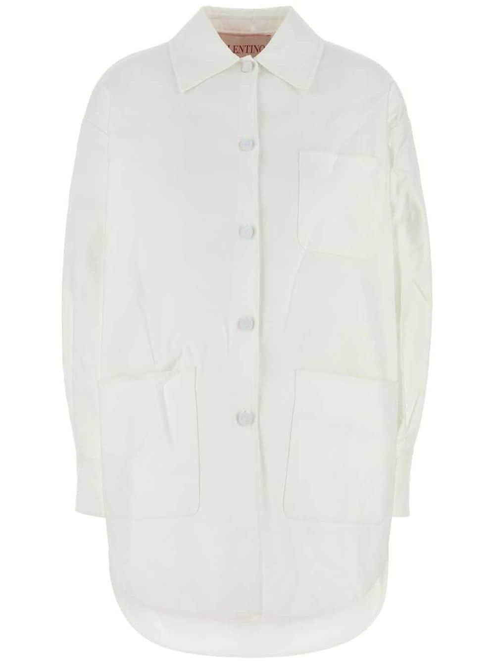 button-up shirt jacket Highlights - White - Cotton blend - Front button fastening - Pointed flat collar - Long sleeves - Buttoned cuffs - Chest patch pocket - Two front patch pockets - Curved hem Made in Italy Composition Cotton 99%, Nylon 1%