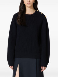 wool sweater Highlights - Black - Virgin wool - Ribbed knit - Embossed gold-tone buttons - Crew neck - Drop shoulder - Long sleeves - Ribbed trim - Straight hem Made in Italy Composition Fabric 100%