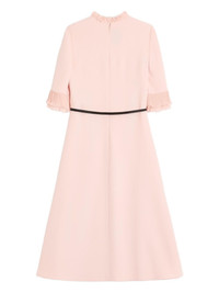 Belted plissé chiffon-trimmed crepe midi dress Pink