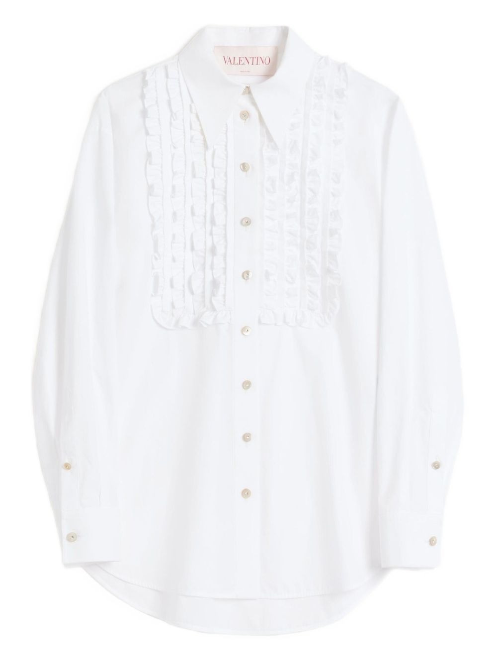 ruffled long-sleeve shirt Highlights - Optical white - Ruffled detail - Long sleeves - Button fastening - Classic collar Made in Italy Composition Cotton 100% Washing instructions Read Manufacturer Guidelines