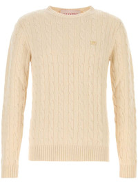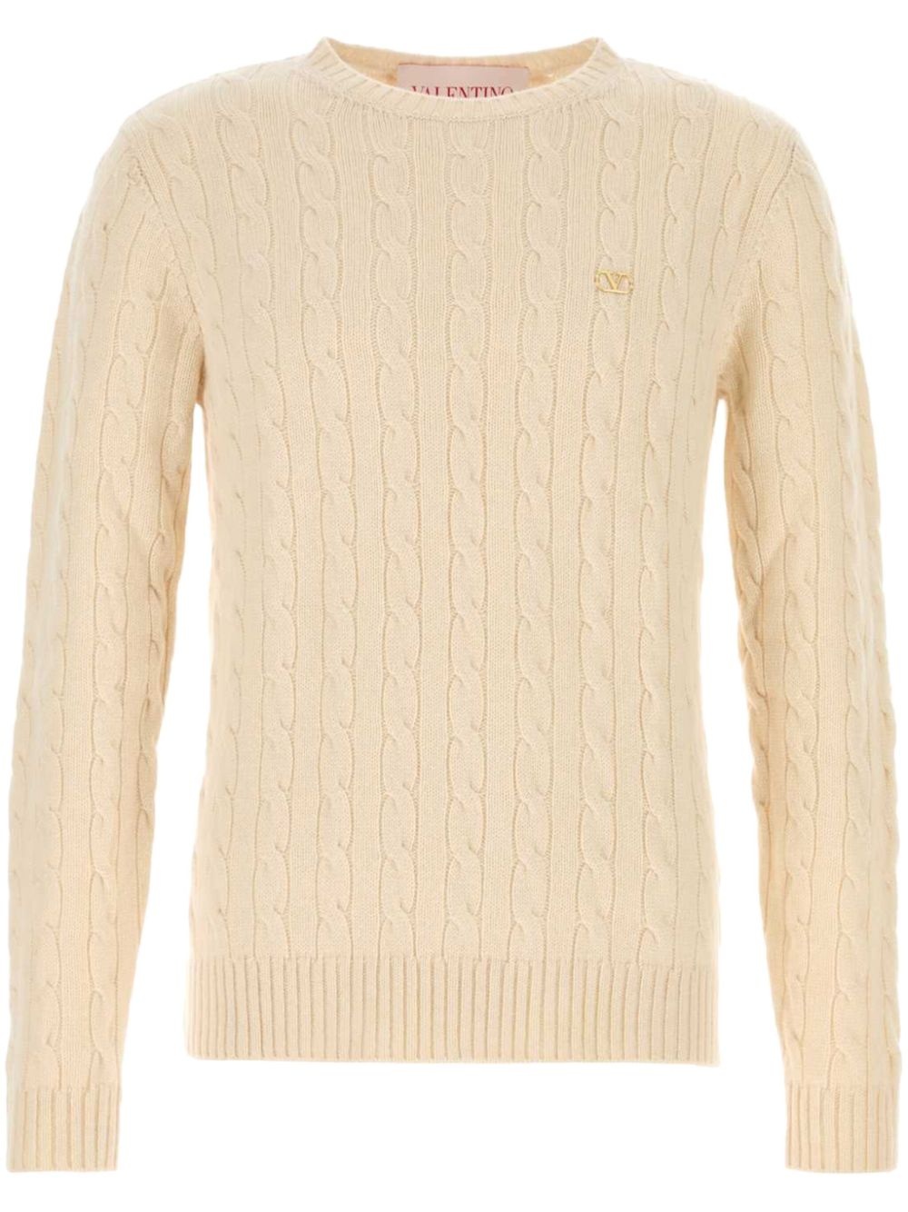 cashmere sweater Highlights - Light beige - Cable knit - Ribbed trim - Vlogo signature Made in Italy Composition Cashmere 100% SIZE & FIT FittingInformation Designed for a relaxed fit, this piece allows for comfort and movement when worn Made with a midweight knit, this piece offers some stretch
