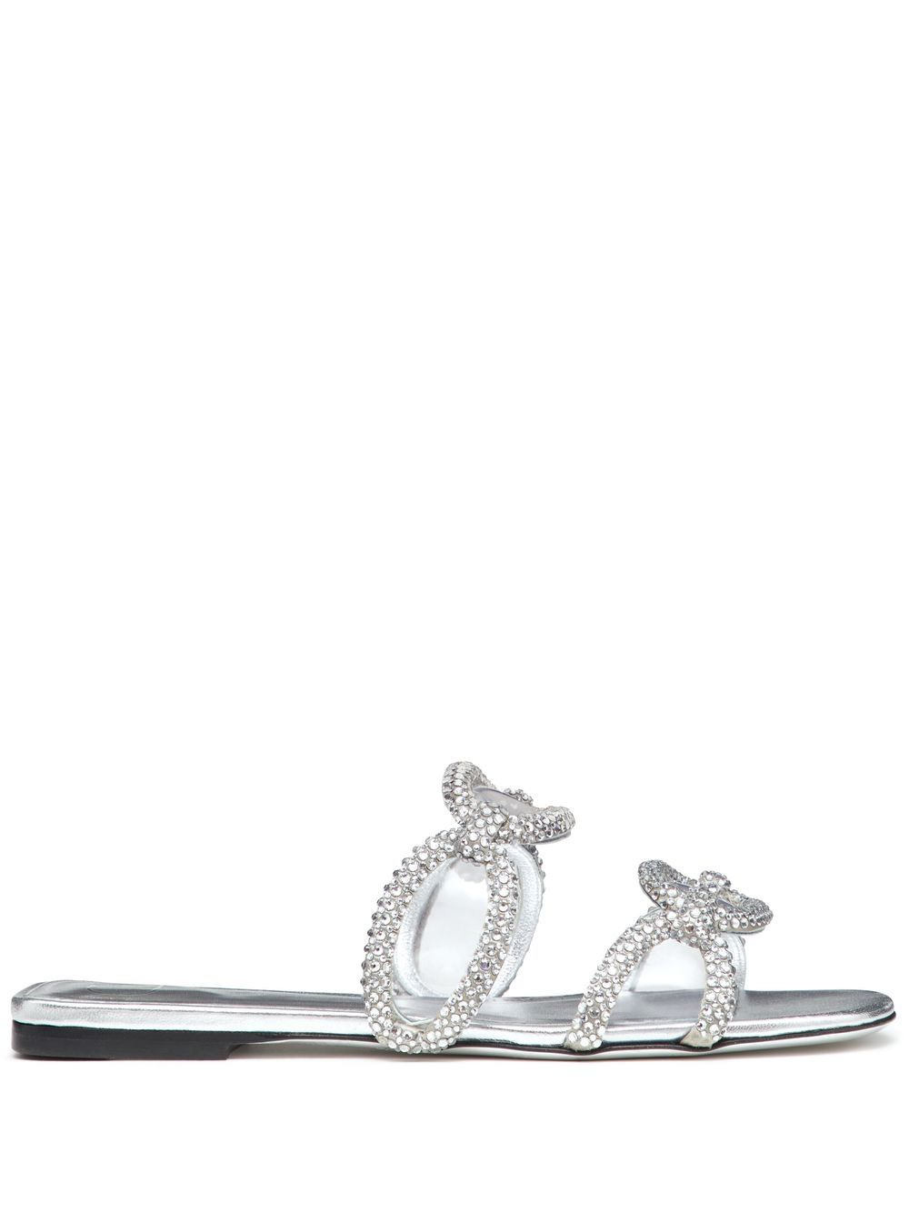 Chain 1967 crystal-embellished sandals Valentino Garavani's signature Chain 1967 motif adorns these silver-toned slides, imagined in a metallic finish and complete with crystal embellishments for an elegant look. Made in Italy Composition Silk 100% Washing instructions Read Manufacturer Guidelines