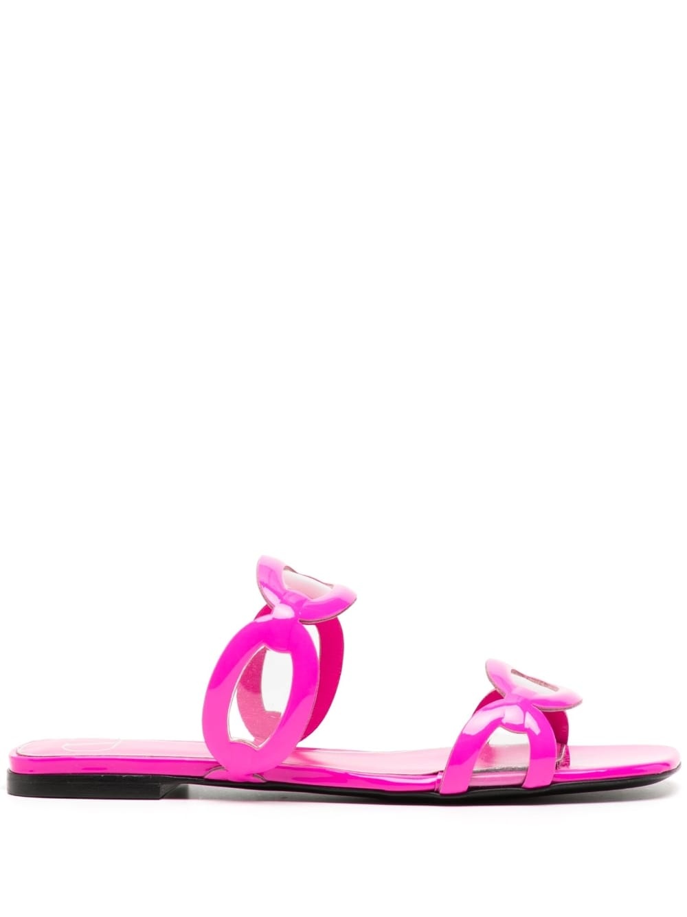 Chain 1967 flat slides Highlights - Hot pink - Lambskin - Patent finish - Double-strap design - Branded insole - Slip-on style - Open toe - Flat sole Made in Italy Composition Leather 100% SIZE & FIT Measurement Sole height 0.59 in(1.5 cm) Washing instructions Do Not Wash/Do Not Dry Clean