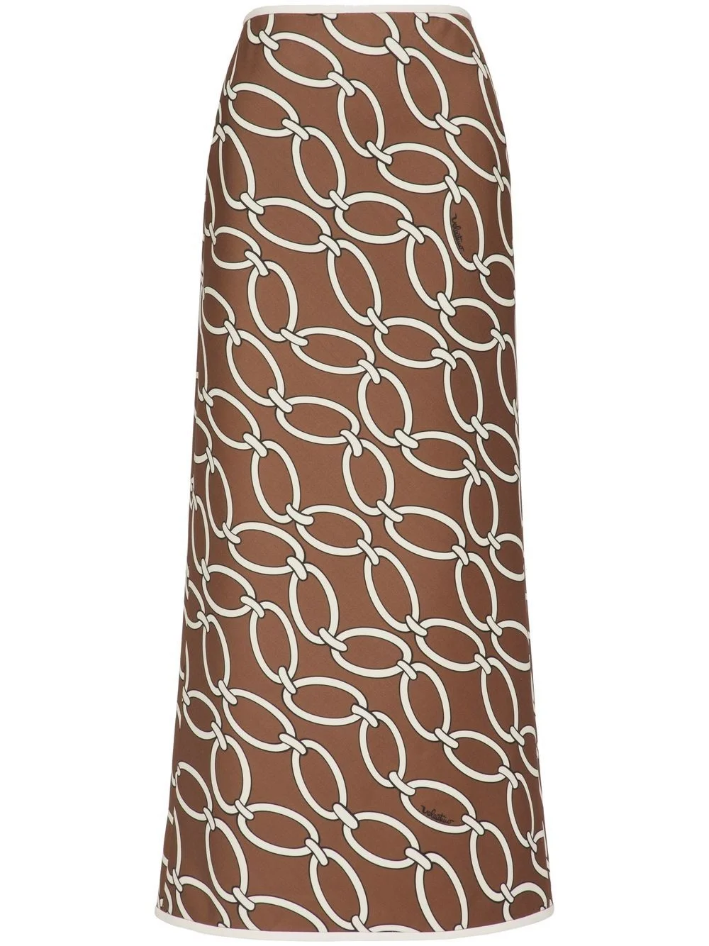 chain-link print virgin wool skirt Showcasing the label’s penchant for custom prints and contemporary design, this Valentino Garavani skirt boasts the label’s signature chain-link print throughout and is crafted from virgin wool for enhanced comfort. Highlights - Valentino ready to wear - Caramel brown - Virgin wool - Chain-link print - High waist - Logo print to the front and rear - Rear slit - Straight hem - Ankle-length - The full look includes valentino garavani accessories. Made in Italy Composition Outer: Virgin Wool 65%, Viscose 35% Lining: Silk 100% SIZE & FIT Measurement HIPS 40.94 in(104 cm) LENGTH 38.97 in(99 cm) WAIST 31.49 in(80 cm) Washing instructions Read Manufacturer Guidelines