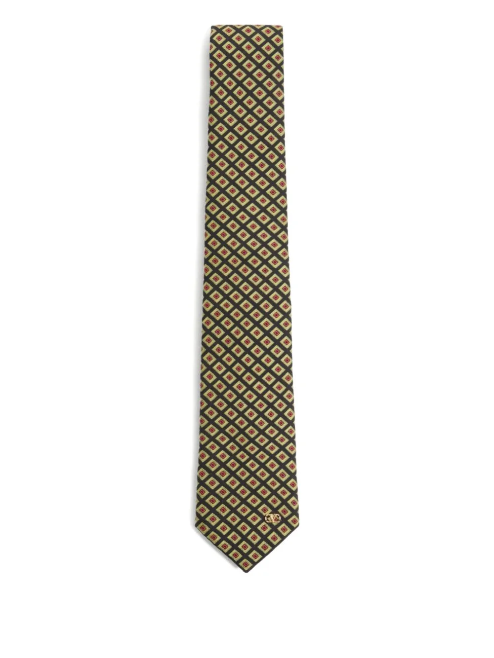 VALENTIE JACQUARD COTTON TIE WITH CHAMBER PATTERN AND VLOGO SIGNATURE DETAIL