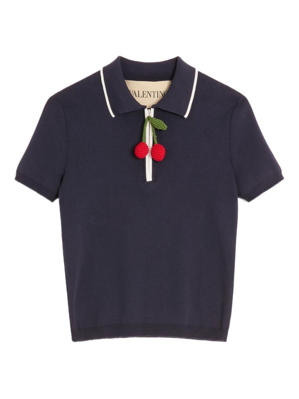 Cherry-charm polo top Highlights - Valentino ready to wear - Navy blue - Short front zip fastening - Classic collar - Short sleeves Made in Italy Composition Cotton 100%