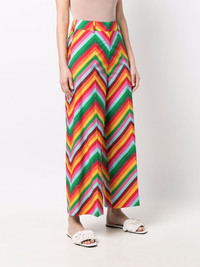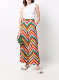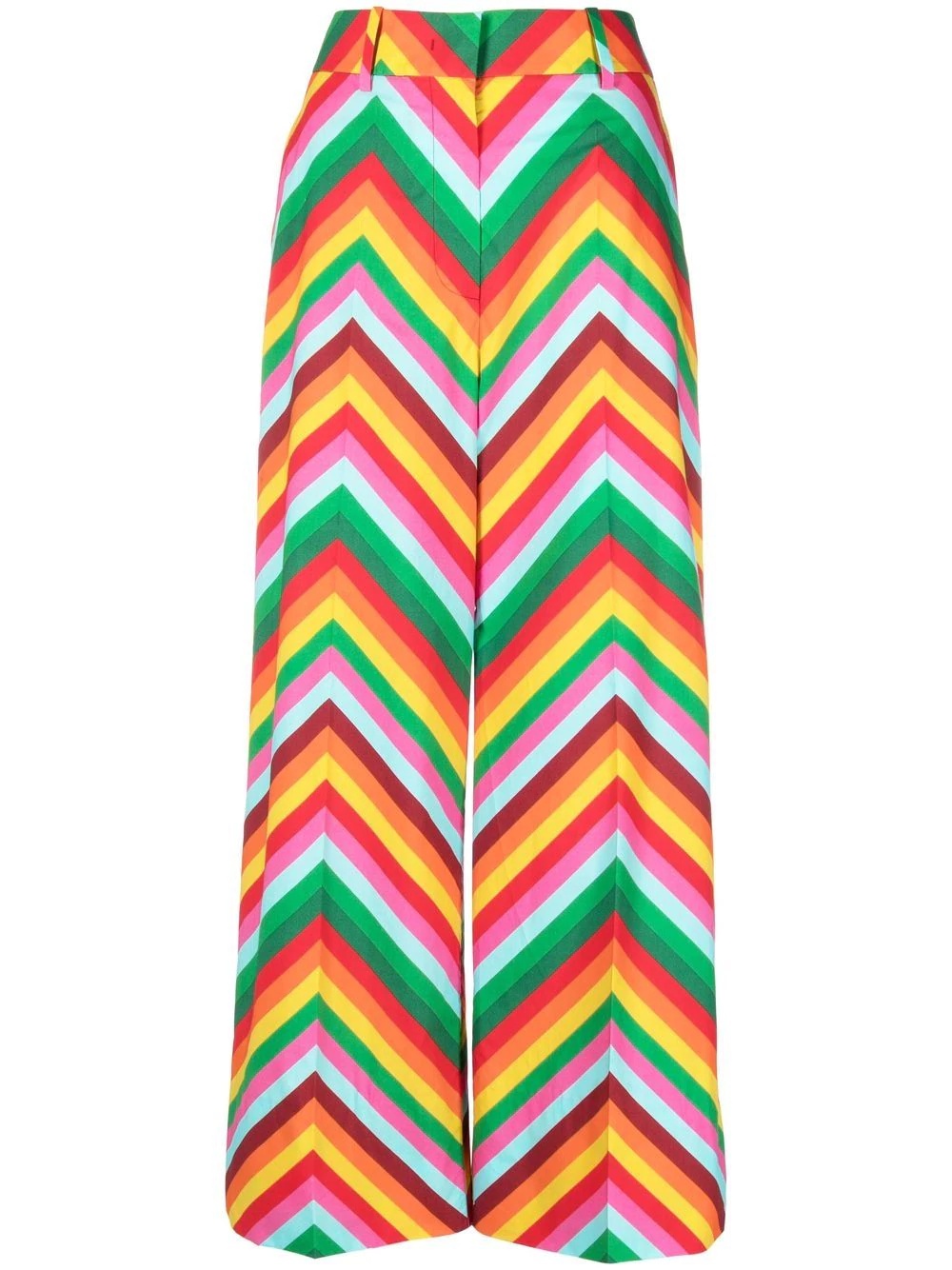 chevron-pattern cropped trousers An all-over chevron pattern creates a playful look for these trousers from Valentino Garavani. This lively aesthetic is further enhanced by the pair's bold multicolour tones. Highlights - Valentino ready to wear - Multicolour - Cotton/silk - Chevron print - Concealed front fastening - Belt loops - Two rear welt pockets - Wide leg - Cropped Made in Italy Composition Lining: Silk 100% Outer: Cotton 100% SIZE & FIT Model measurements Height 5 ft 9 in(1.75 m) Bust/Chest 32.67 in(83 cm) Hips 36.22 in(92 cm) Waist 24.8 in(63 cm) FittingInformation This piece fits true to size. We recommend you get your regular size Designed to be fitted at the waist and hips, loose over the leg Made with a mid-weight non-stretch fabric Washing instructions Dry Clean Only