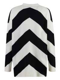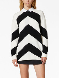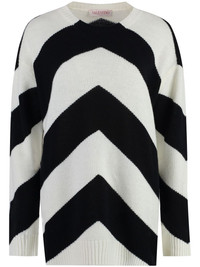 wool sweater Black and white chevron stripes elevate the relaxed crew neck silhouette of this Valentino Garavani jumper, spun in Italy from delicate virgin wool. Highlights - Valentino ready to wear - Black tie collection - Black/white - Virgin wool - Knitted construction - Chevron knit - Crew neck - Drop shoulder - Long sleeves - Ribbed cuffs and hem - The full look includes valentino garavani accessories. Made in Italy Composition Virgin Wool 100%, Cotton 100% Washing instructions Read Manufacturer Guidelines