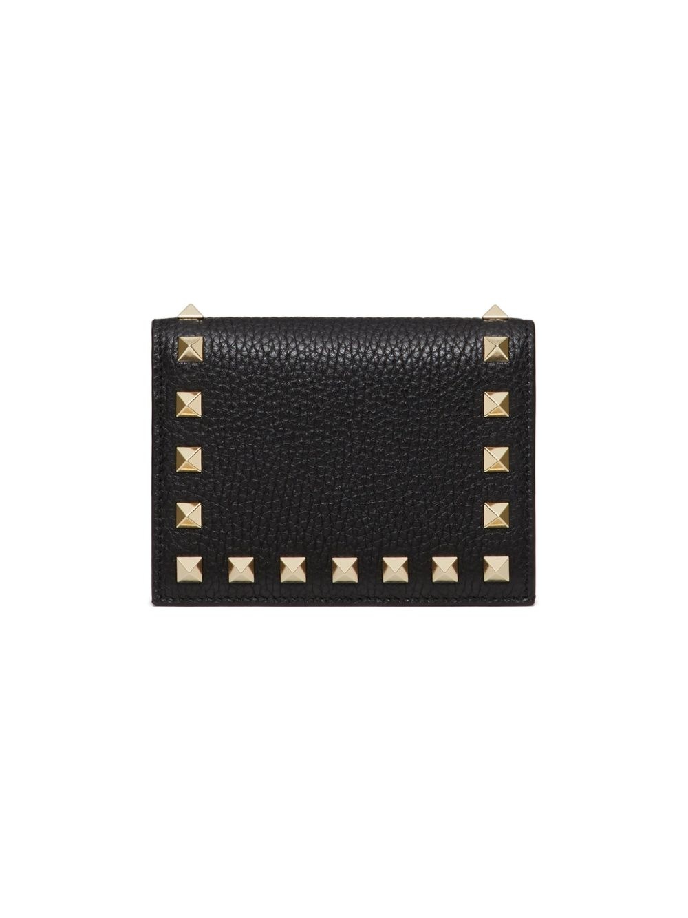 small Rockstud wallet A symbol of the brand’s sense of timeless elegance, the Rockstuds on this compact wallet give it away as a Valentino Garavani piece. This unmistakable theme is seen here in a golden hue against a black leather construction. Highlights - Black leather coin pocket card slots front press-stud fastening internal logo stamp logo stamp to the front gold-tone rockstud detailing Made in Italy Composition Outer: Calf Leather 100%, Metal 100% Lining: Calf Leather 100%, Viscose 100% SIZE & FIT Measurement WIDTH 4.72 in(12 cm) LENGTH 3.54 in(9 cm) DEPTH 1.18 in(3 cm) Washing instructions valentino