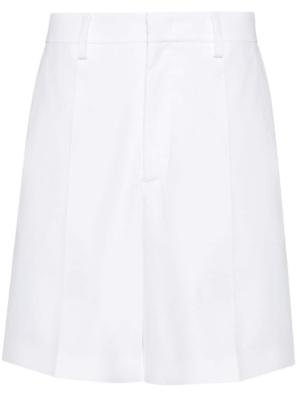 cotton pressed-crease shorts Highlights - Off-white - Cotton - Belt loops at the waist - Two side slash pockets - Pressed crease - Two rear patch pockets - Internal logo tag - Thigh-length - Concealed front button, hook and zip fastening Made in Italy Composition Outer: Cotton 100% Lining: Polyester 100%, Cupro 100% SIZE & FIT Model measurements Height 6 ft 2 in(1.89 m) Bust/Chest 39.76 in(101 cm) Hips 37.4 in(95 cm) Waist 29.92 in(76 cm) FittingInformation Designed for a straight-leg fit, offering an unrestricted and comfortable fit over the leg Made from a midweight non-stretch fabric This piece fits true to size – take your usual size Washing instructions Dry Clean Only
