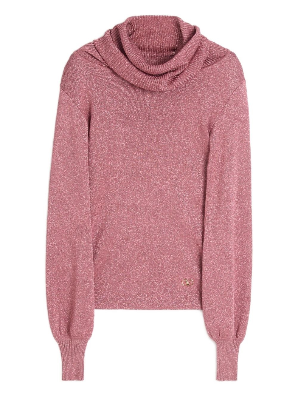 cowl-neck glittery sweater Highlights - Pink - Cowl neck - Long puffed sleeves - Sparkle effect Made in Italy Composition Viscose 81%, Metallic Fibre 19%