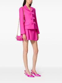 Crepe Couture mini skirt Highlights - Valentino ready to wear - Fuchsia pink - Virgin wool-silk blend - Crepe texture - Concealed rear zip fastening - High waist - Bow detailing - Pleat detailing - Two side slit pockets - Silk lining - A-line - Straight hem - Thigh-length - The full look includes valentino garavani accessories. Made in Italy Composition Outer: Virgin Wool 65%, Silk 35% Lining: Silk 100%