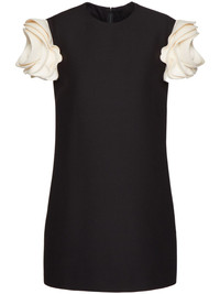 Crepe Couture minidress Rendered in black, this minidress from Valentino Garavani is constructed with floral appliques in contrasting hues at the sleeves, for a romantic look. Highlights - Valentino ready to wear - Black - Virgin wool blend - Crepe texture - Floral applique - Round neck - Concealed rear zip fastening - Short sleeves - The full look includes valentino garavani accessories. Made in Italy Composition Lining: Viscose 91%, Elastane 9% Outer: Virgin Wool 65%, Silk 35% Silk 100% SIZE & FIT Measurement HIPS 40.15 in(102 cm) LENGTH 35.03 in(89 cm) WAIST 35.43 in(90 cm) Washing instructions Read Manufacturer Guidelines