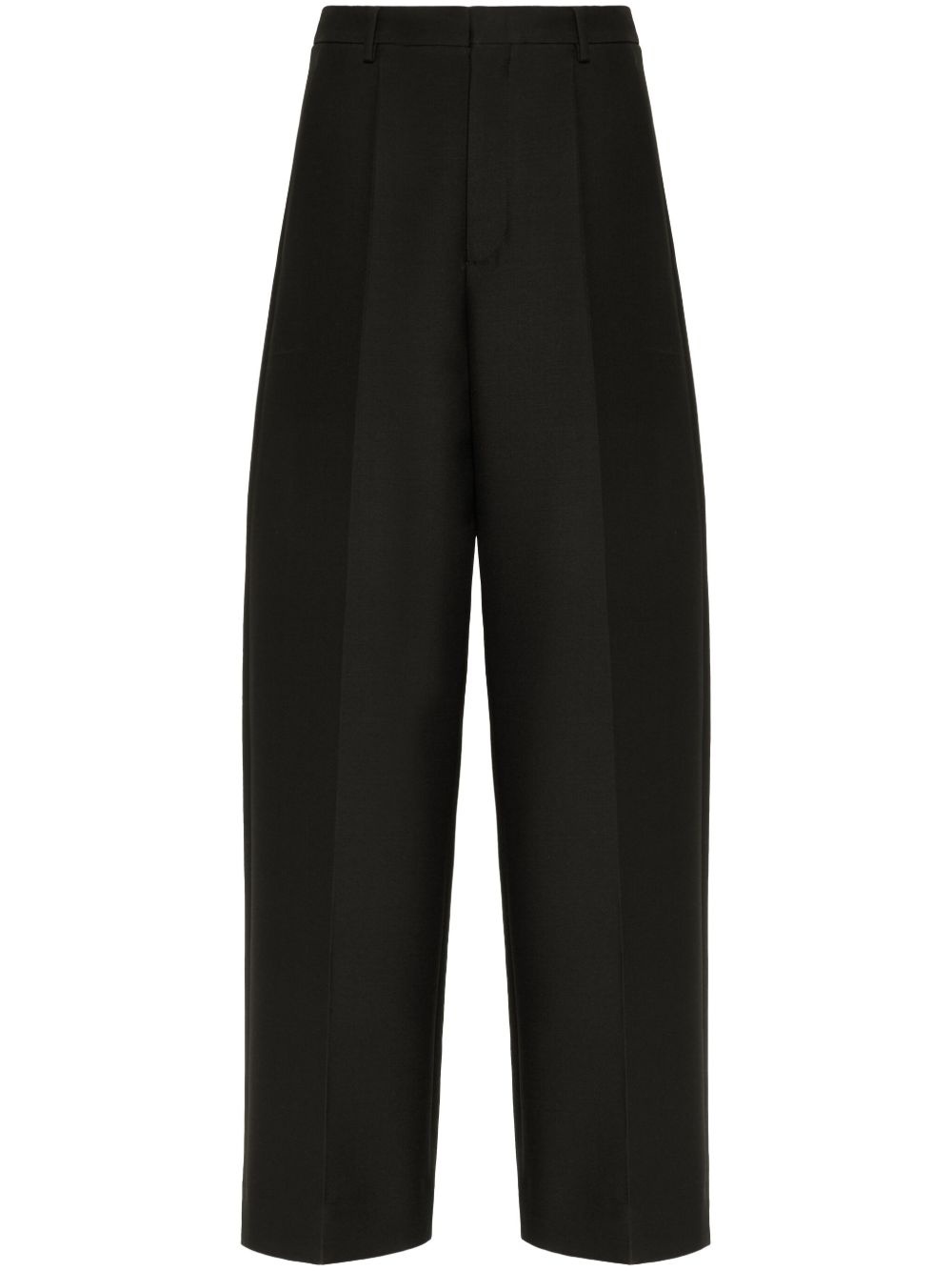 Crepe Couture tailored trousers In true Valentino Garavani style, a classic silhouette is enhanced with a dramatic appeal. Presented in a classic black colourway, these tailored trousers fall to an extra long length which contributes to their bold appearance. Highlights - Valentino ready to wear - Black - Virgin wool blend - Pressed crease - High waist - Belt loops - Concealed fly and button fastening - Straight leg - Extra-long length - The full look includes valentino garavani accessories. Made in Italy Composition Lining: Cupro 100%, Viscose 100% Outer: Virgin Wool 65%, Silk 35%