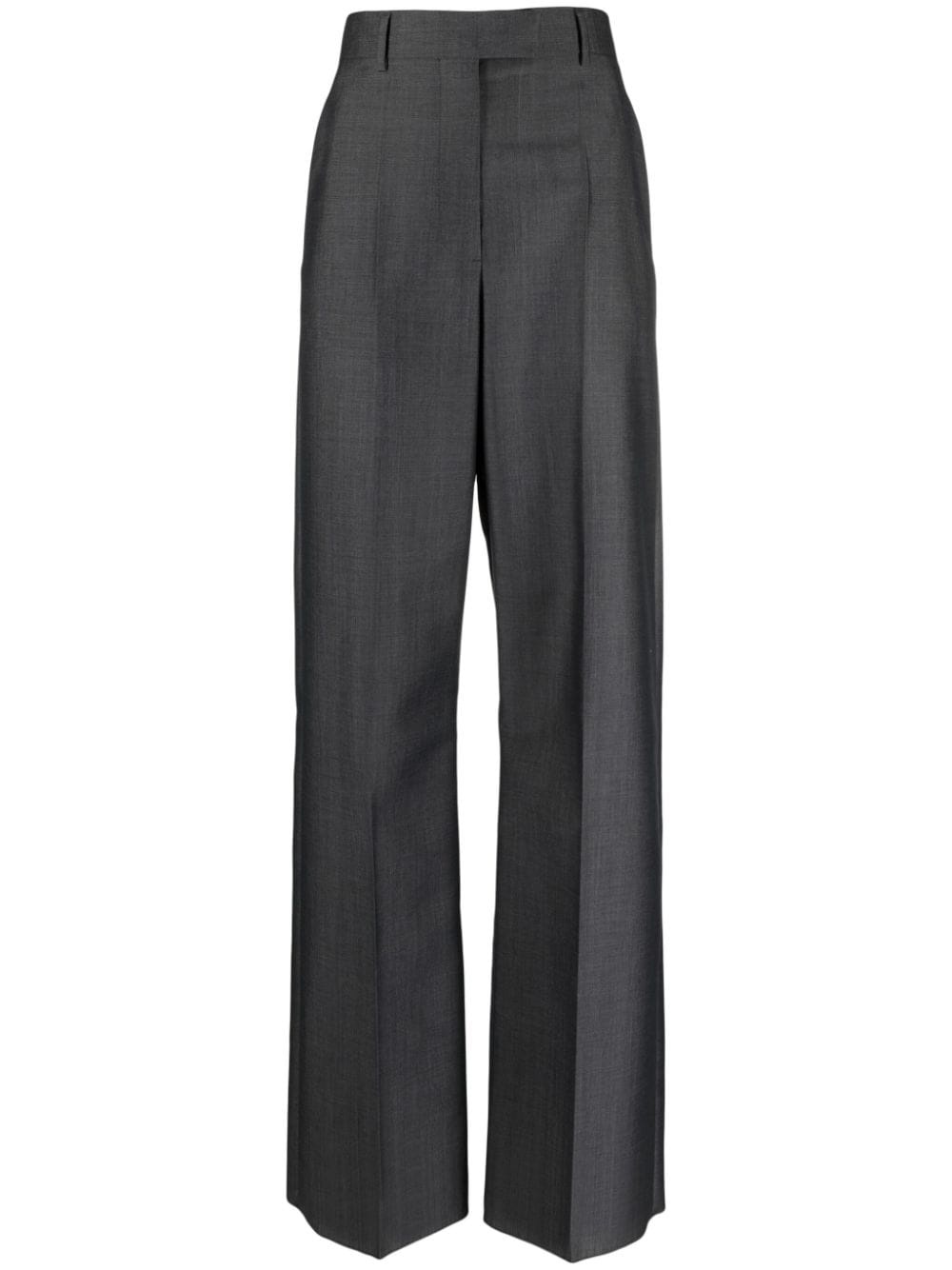 Crepe Couture tailored trousers Crafted from a soft virgin wool and mohair blend, these Valentino Garavani tailored trousers perfectly reflect the brand's understated take on timeless silhouettes. The grey-hued pair sits high on the waist and falls to a fluid straight leg. Highlights - Charcoal grey - Mohair-wool blend - Belt loops - Pressed crease - Off-centre front fastening - Two side inset pockets - Two rear welt pockets - Straight leg Made in Italy Composition Outer: Mohair 60%, Virgin Wool 40% Lining: Cupro 100% SIZE & FIT Model measurements Height 5 ft 11 in(1.8 m) Bust/Chest 31.49 in(80 cm) Hips 36.22 in(92 cm) Waist 25.59 in(65 cm) Measurement FRONT RISE 13.38 in(34 cm) HIPS 44.09 in(112 cm) WAIST 35.43 in(90 cm) FittingInformation Designed with a wide-leg cut, these trousers allow for a close fit at the waist and offer a loose and roomy fit over the leg Made from a lightweight non-stretch fabric This piece fits large – take one size down Washing instructions Dry Clean Only