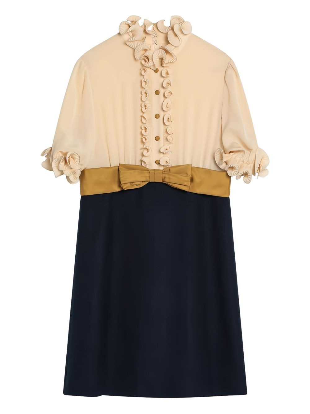 Crepe de Chine mini dress Highlights - Blue - Ruffled detailing - Bow detailing - Short sleeves Made in Italy Composition Silk 100%