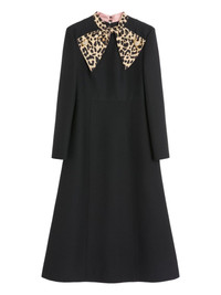 Embellished leopard-print wool and silk-blend midi dress Black