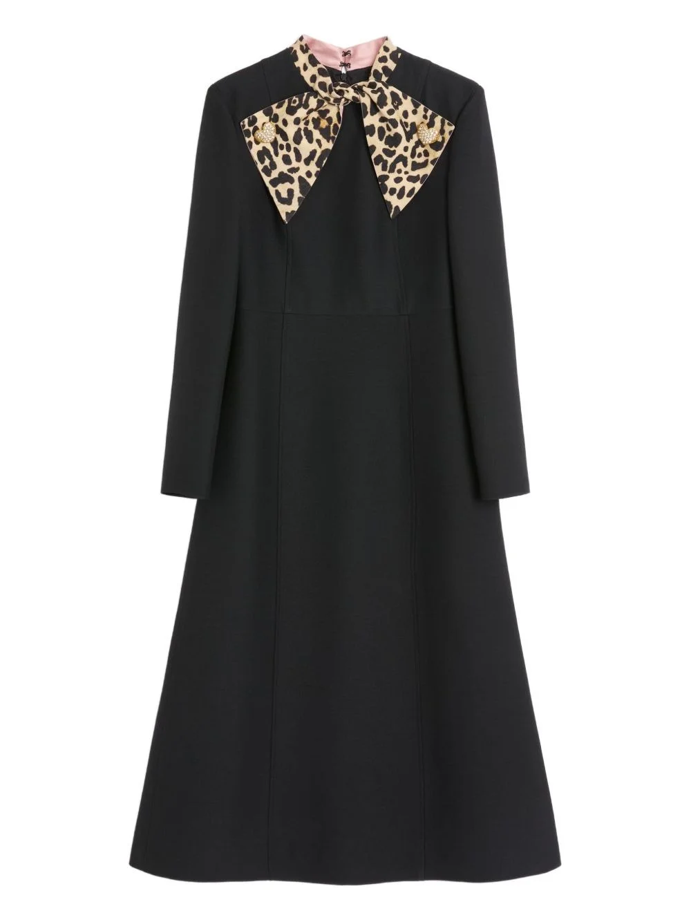 crepe midi dress Highlights - Black - Animalier print bow - Rear zip fastening - Long sleeves - Midi length Made in Italy Composition Wool 65%, Silk 35% Washing instructions Read Manufacturer Guidelines