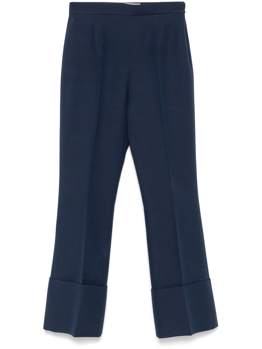 Crepe Couture trousers Highlights - Valentino ready to wear - Concealed side zip fastening - Pressed crease - Flared hem Made in Italy Composition Virgin Wool 65%, Silk 35% SIZE & FIT Model measurements Height 5 ft 10 in(1.78 m) Bust/Chest 33.85 in(86 cm) Hips 36.61 in(93 cm) Waist 26.77 in(68 cm) FittingInformation Designed with a flared hem, these trousers allow for a close fit at the waist with a slim fit over the leg and widening towards the hem Made from a midweight non-stretch fabric