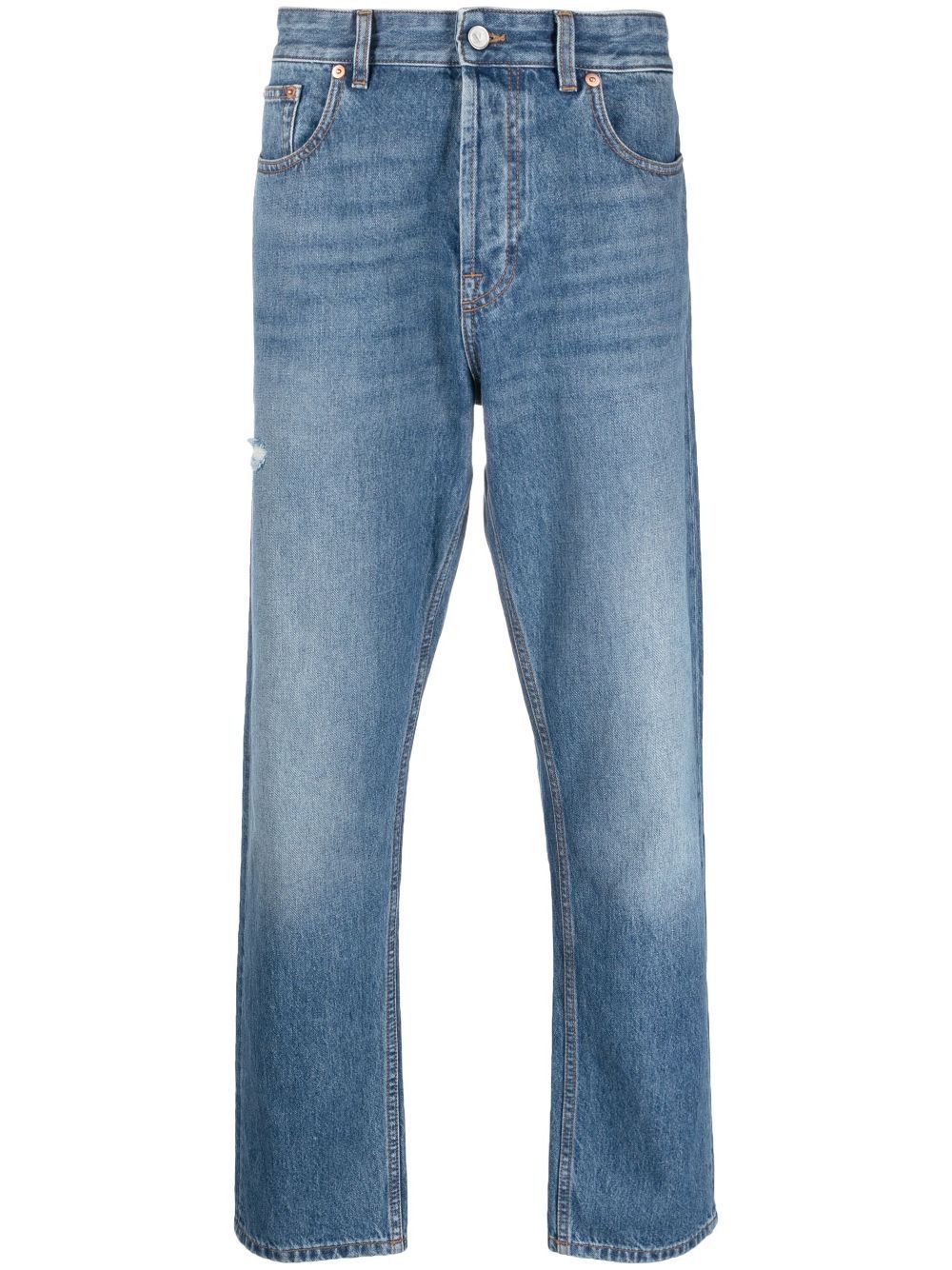 VLogo Signature jeans These cropped jeans showcase Valentino Garavani's expertise in creating exceptional-quality denim. Crafted in Italy from cotton, this pair boasts a faded effect throughout for a love-worn finish. Highlights - Valentino ready to wear - Blue - Cotton - Mid-rise - Front button and concealed zip fastening - Belt loops - Five pockets - Leather logo patch at rear - Cropped legs - The full look includes valentino garavani accessories. Made in Italy Composition Lining: Polyester 65%, Cotton 35% Outer: Cotton 100%, Calf Leather 100% SIZE & FIT Measurement FRONT RISE 12.59 in(32 cm) INSIDE LEG 28.74 in(73 cm) HIPS 44.88 in(114 cm) Washing instructions Read Manufacturer Guidelines
