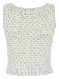 cropped knitted top Highlights - White - Scoop neck - Cut-out detailing - Elasticated hem - Internal logo patch - Cropped Made in Italy Composition Polyester 73%, Nylon 20%, Viscose 6%, Metallic Fibre 1%