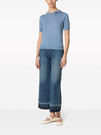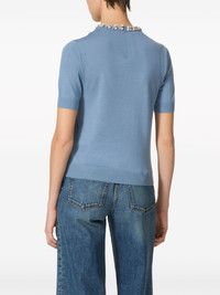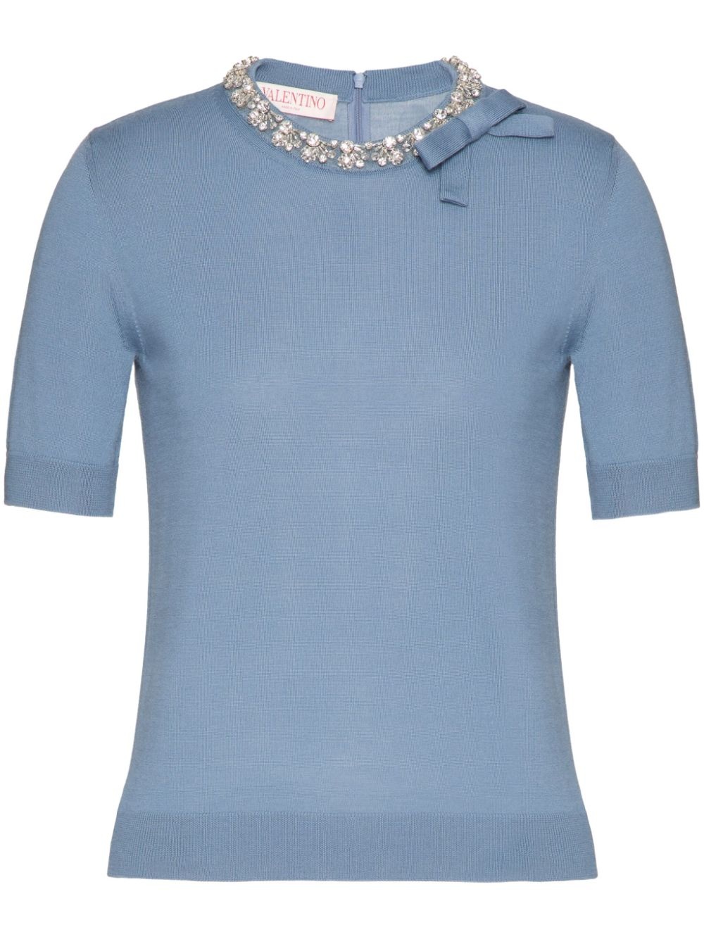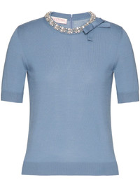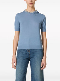 embroidered wool sweater Highlights - Blue - Virgin wool - Concealed rear zip fastening - Bow detail - Short sleeves - Ribbed trim - The model is 176 cm / 5'9'' tall and wears an italian size s Made in Italy Composition Polyester 100%, Virgin Wool 100%, Polyamide 100% Washing instructions Read Manufacturer Guidelines