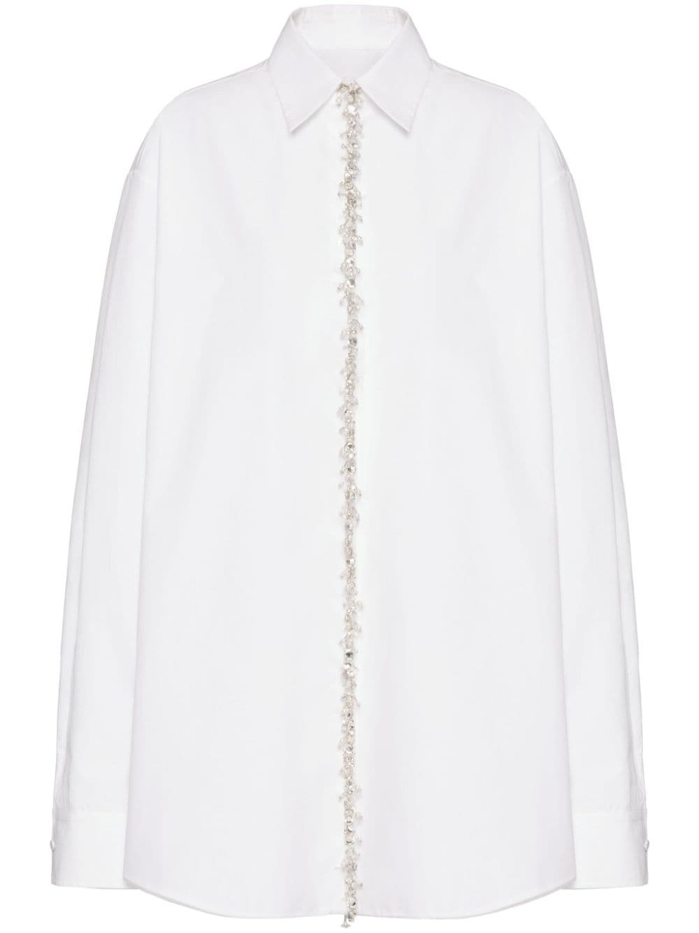 Compact embroidered shirt Highlights - Valentino ready to wear - White - Silk - Crystal embellishment - Classic collar - Concealed front fastening - Long sleeves - Straight hem - The full look includes valentino garavani accessories. Made in Italy Composition Outer: Cotton 100%, Polyester 100%, Polyamide 100% Lining: Silk 100%
