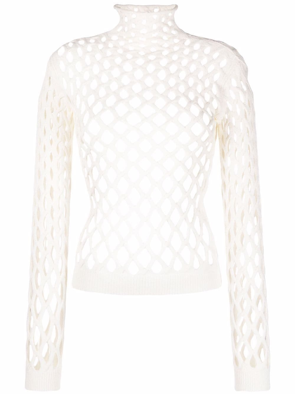 cut-out knitted jumper A sense of contemporary elegance runs through Valentino Garavani’s collections, with distinctive designs and modern silhouettes capturing the label’s design approach. Presented in a white hue, this knitted piece from the label’s AW21 collection showcases a cut-out design that creates a bold visual effect. Highlights - Valentino ready to wear - White - Cut-out detailing - High neck - Long sleeves Made in Italy Composition Viscose 75%, Polyester 25% SIZE & FIT Model measurements Height 5 ft 11 in(1.8 m) Bust/Chest 31.49 in(80 cm) Hips 36.61 in(93 cm) Waist 24.4 in(62 cm) FittingInformation This piece fits true to size. We recommend you get your regular size Cut for a slim fit Made with a mid-weight fabric Washing instructions Read Manufacturer Guidelines