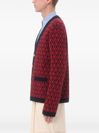 diamond-patterned cardigan Highlights - Red - Navy blue accents - V-neckline - Button fastening - Contrasting trims - All-over diamond pattern Made in Italy Composition Virgin Wool 100% Washing instructions Read Manufacturer Guidelines
