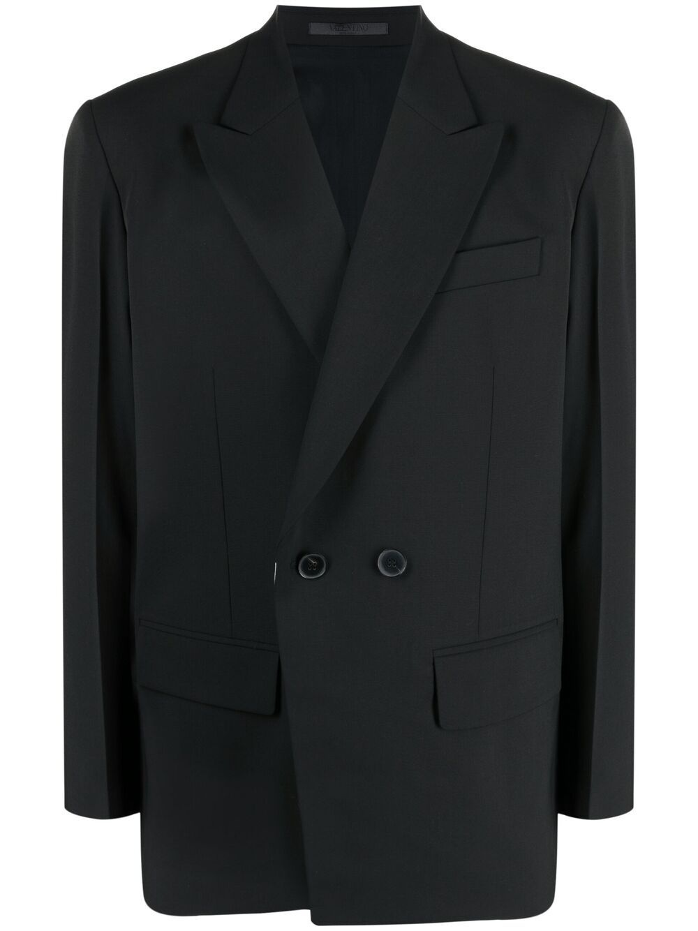 double-breasted blazer It's time to smarten up your style. With a classic double-breasted design, this wool-blend blazer from Valentino Garavani is the perfect way to do so. Now you're tailored to perfection. Highlights - Valentino ready to wear - Black - Wool-blend - Wide peak lapels - Long sleeves - Chest welt pocket - Double-breasted button fastening - Two side flap pockets Made in Italy Composition Lining: Cupro 100% Outer: Wool 66%, Viscose 34% SIZE & FIT Model measurements Height 6 ft 1 in(1.85 m) Bust/Chest 37.79 in(96 cm) Hips 37.4 in(95 cm) Waist 30.7 in(78 cm) Measurement CHEST 44.88 in(114 cm) SLEEVE LENGTH 25.98 in(66 cm) Shoulder Width 19.29 in(49 cm) WAIST 44.09 in(112 cm) FittingInformation This piece fits true to size. We recommend you get your regular size Cut for a loose fit Made with a mid-weight fabric Washing instructions Read Manufacturer Guidelines