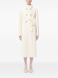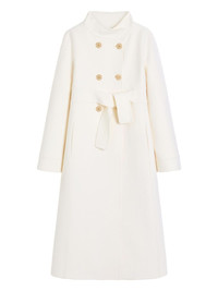 Compact Drap coat Highlights - White - Front button fastening - Front tie fastening - Two side inset pockets - Logo-engraved buttons Made in Italy Composition Outer: Virgin Wool 90%, Cashmere 10% Lining: Silk 100% SIZE & FIT FittingInformation Designed for a slim fit that sits just away from the body offering a close yet comfortable fit The tie fastening gives an adaptable and personalised fit Made from a midweight non-stretch fabric