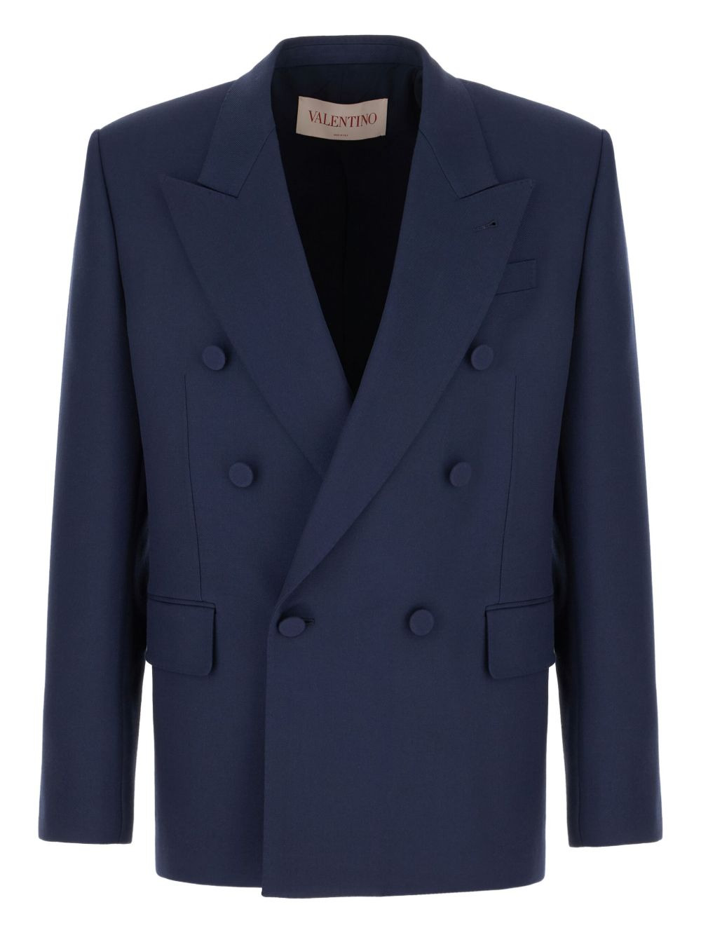 double-breasted gabardine jacket Highlights - Navy blue - Double-breasted button fastening - Jetted chest pocket - Two front flap pockets - Fabric-covered buttons Made in Italy Composition Virgin Wool 100%