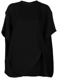drape-detail asymmetric T-shirt Fabricated from lightweight and fluid silk, this easy-to-wear silhouette sports a crew neckline and short sleeves that complement its draped shape evocative of Valentino Garavani craftsmanship and attention to detail. Highlights - Valentino ready to wear - Black - Silk - Draped detailing - Crew neck - Short sleeves - Tonal stitching - Straight hem Made in Italy Composition Silk 100% SIZE & FIT Model measurements Height 5 ft 10 in(1.78 m) Bust/Chest 29.92 in(76 cm) Hips 34.64 in(88 cm) Waist 23.62 in(60 cm)