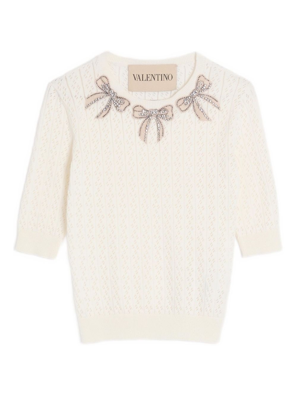embroidered sweater Highlights - White - Crew neck - Bow detailing - Half-length sleeves - Ribbed cuffs and hem Made in Italy Composition Cotton 100%