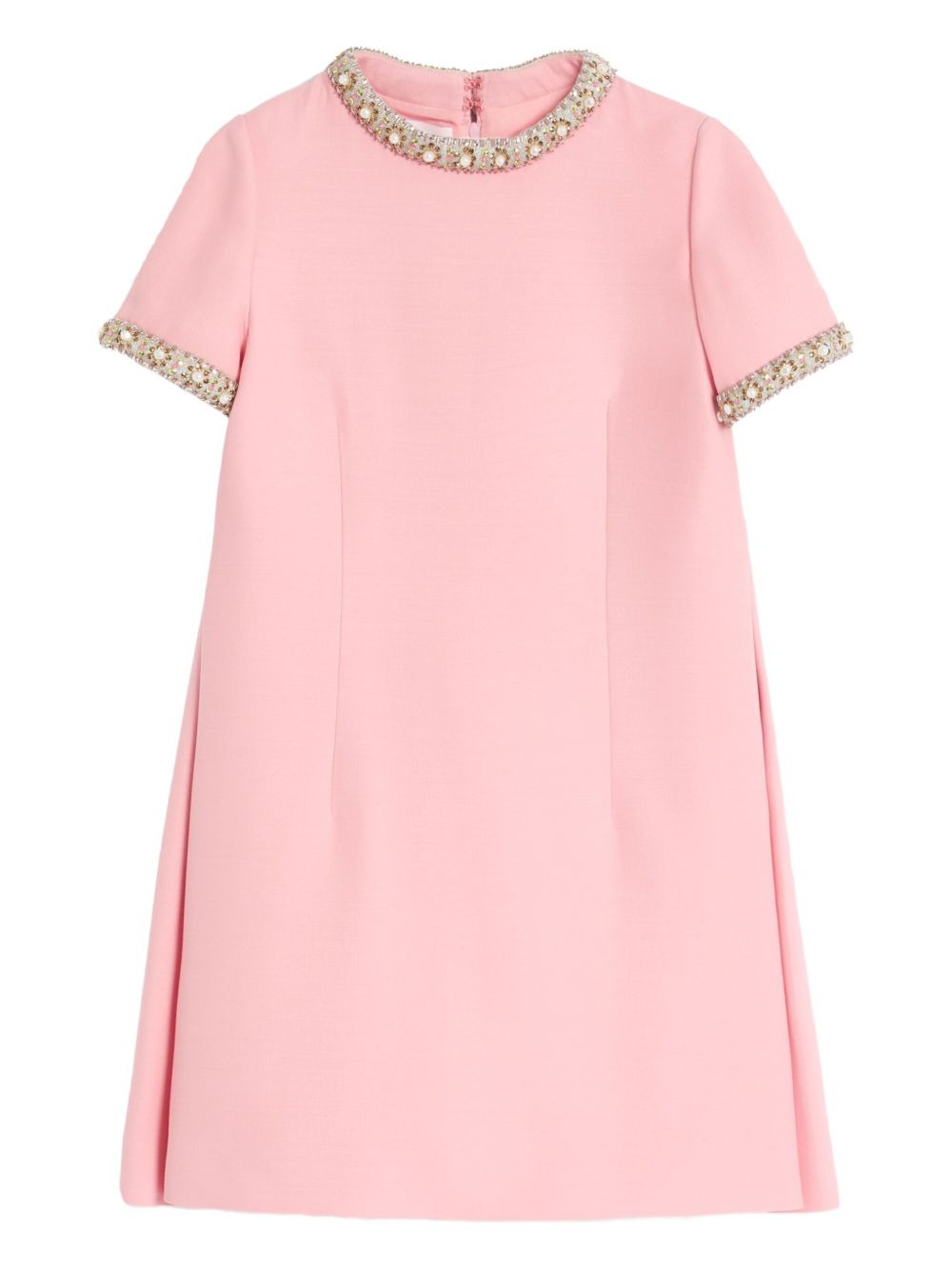 Crepe Couture embroidered mini dress Highlights - Bubblegum pink - Concealed rear hook and zip fastening - Faux-pearl detailing - Short sleeves - The model is 176 cm / 5'9'' tall and wears an italian size 40 Made in Italy Composition Outer: Polyamide 100%, Virgin Wool 65%, Polyester 62%, Metallic Fibre 38%, Silk 35% Lining: Silk 100%, Polyester 100% Washing instructions Read Manufacturer Guidelines