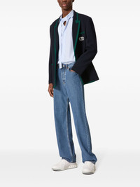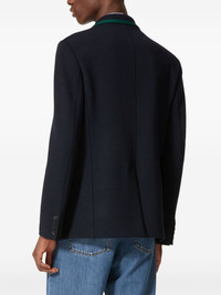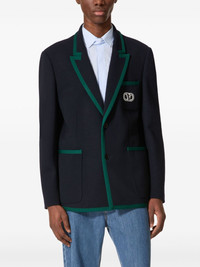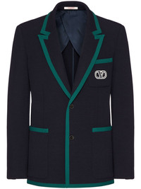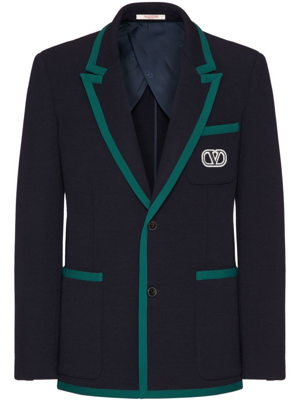 VLogo Signature single-breasted blazer Drawing on the brand's interest in collegiate styles, this wool blazer arrives in a navy blue colourway with sea green trims. It features the label's iconic VLogo embroidered at the chest and boasts three patch pockets at the front. Highlights - Valentino ready to wear - Navy/green - Wool blend - Peak lapels - Long sleeves - Embroidered logo at chest - Chest patch pocket - Front button fastening - Contrast trims - Two front patch pockets - Central rear vent - Straight hem - The full look includes valentino garavani accessories. Made in Italy Composition Outer: Wool 92%, Polyamide 6%, Elastane 2% Lining: Polyester 100%, Cupro 100% Washing instructions Read Manufacturer Guidelines