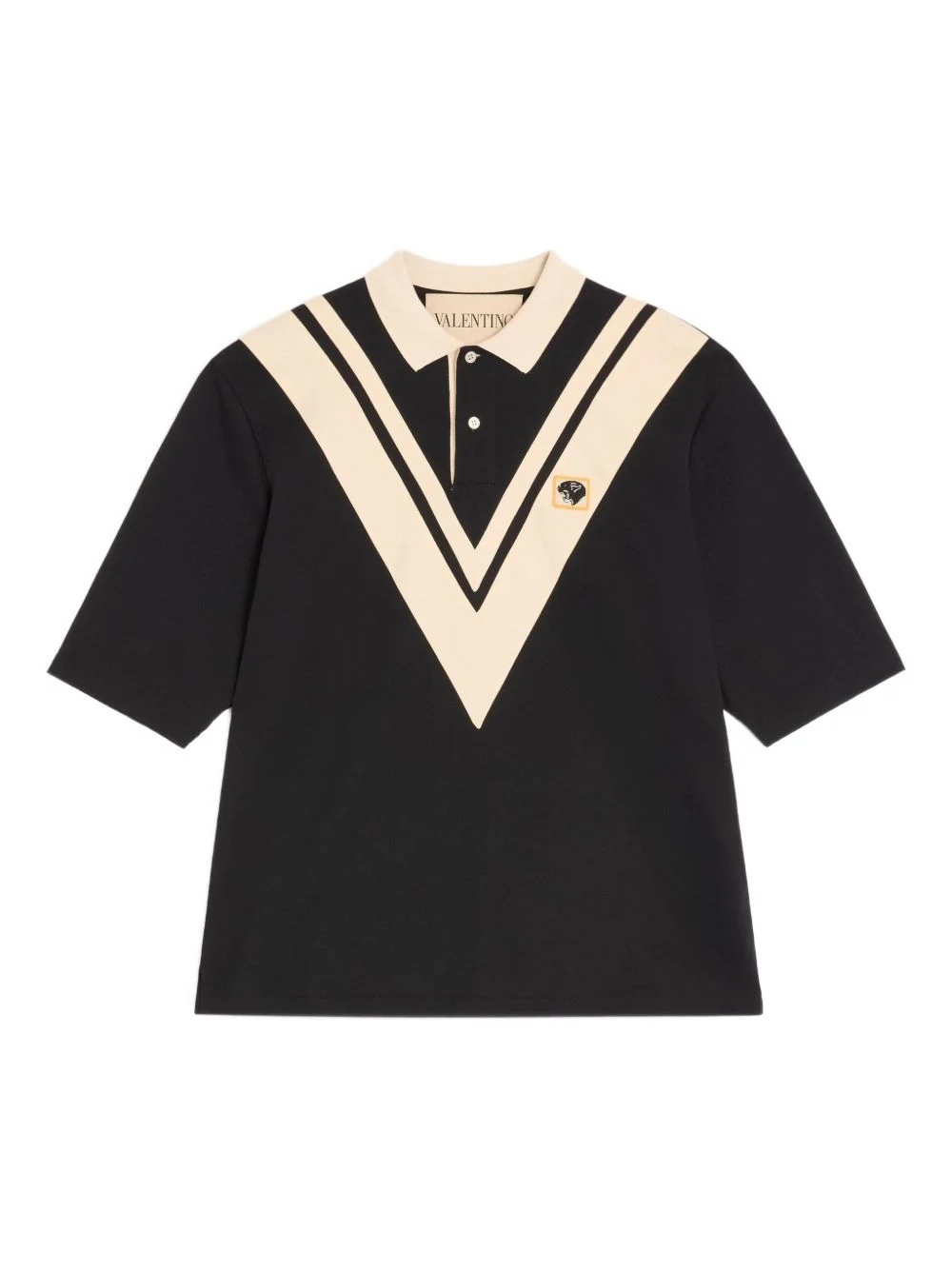 VALENTINO COTTON POLO WITH INLAID V AND EMBROIDERED PANTHER PATCH