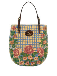 embroidered-raffia V-logo shoulder bag Highlights - Beige - Raffia - Floral embroidery - Golden metal hardware - Adjustable handle - V-logo plaque Made in Italy Composition Outer: Raffia 100% Lining: Fabric 100% SIZE & FIT Measurement DEPTH 1.57 in(4 cm) HEIGHT 11.41 in(29 cm) WIDTH 10.62 in(27 cm)