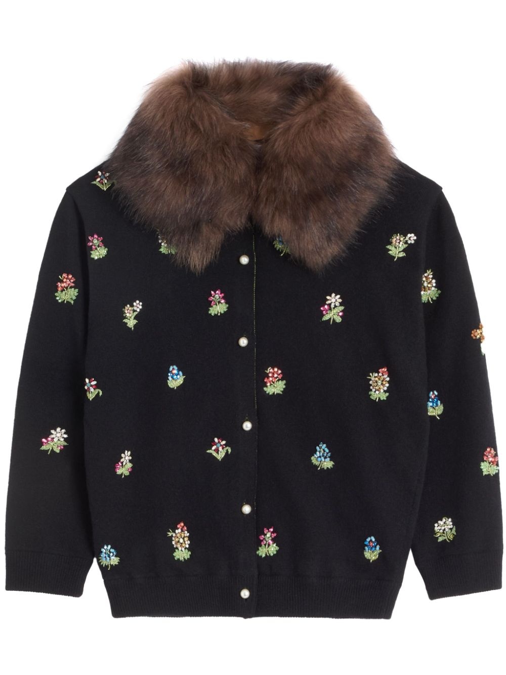 embellished wool cardigan Highlights - Black - Virgin wool - Front button fastening - Detachable faux-fur collar - Floral embroidery - Bead detailing - Three-quarters length sleeves - Ribbed cuffs and hem Made in Italy Composition Outer: Virgin Wool 100%, Sheep Skin/Shearling 100% Lining: Acetate 75%, Silk 25%