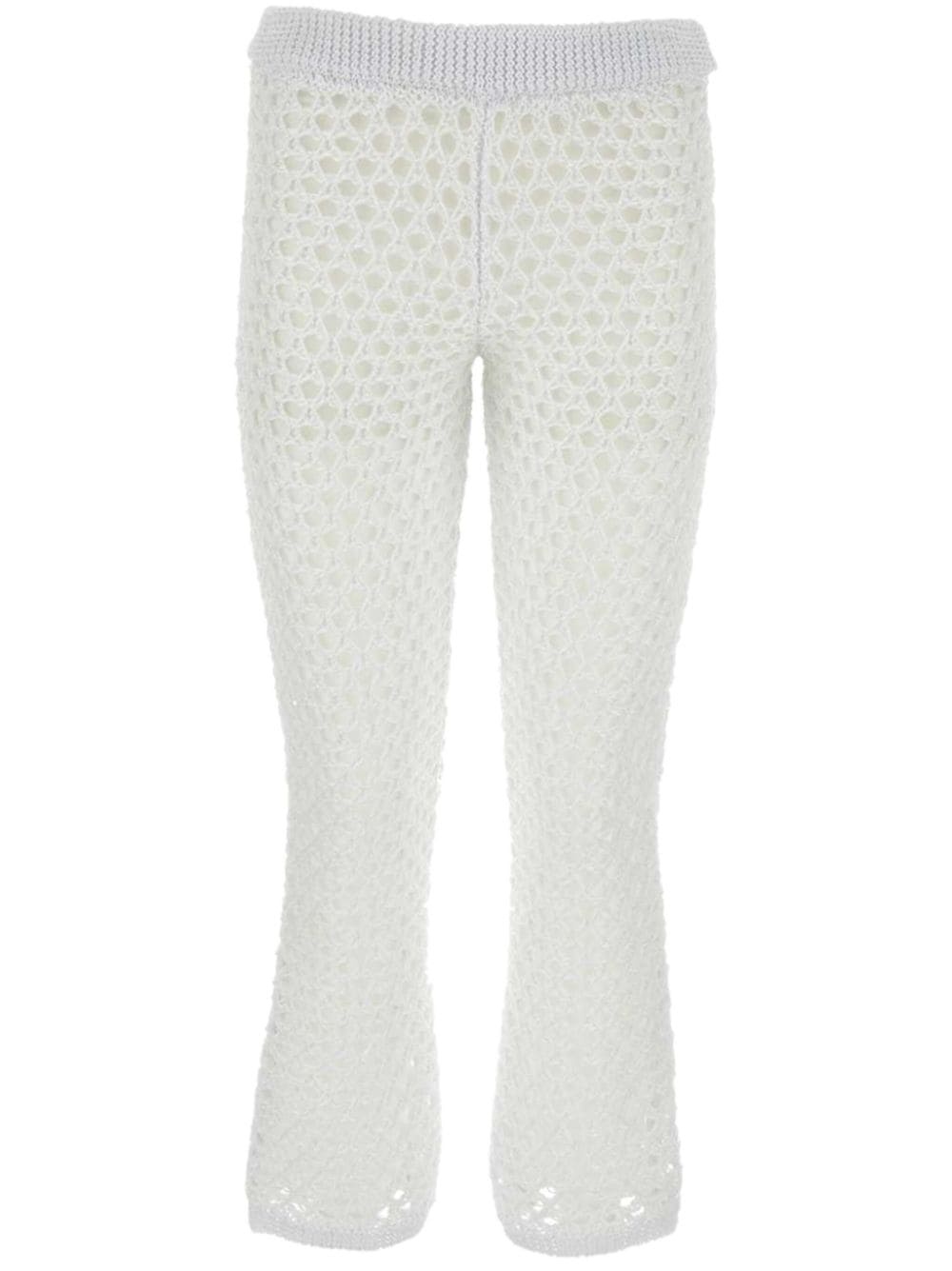 Escape crochet trousers Highlights - White - Crochet knit - Elasticated waistband - Flared - Cropped - Straight hem - Detachable lining Made in Italy Composition Outer: Polyester 73%, Nylon 20%, Metallic Fibre 1% Viscose 6% Lining: Viscose 91%, Elastane 9%